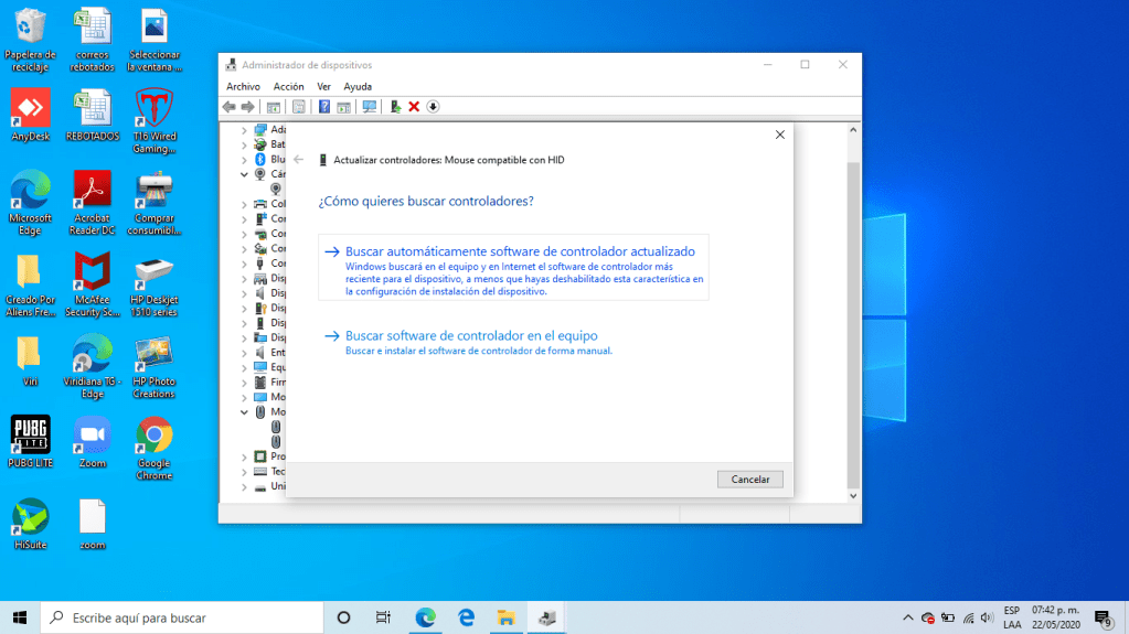 seleccionaremos el dispositivo el cual queremos actualizar el driver, en este caso seleccionaremos MOUSE